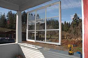 pretty well! With Big Rick's table saw she was able to trim edges to fit the siding together neatly. The ends with out paint make it look like there are some holes in the railing. <G> Friday she plans to stop by a lumber store to pick out some wood to use for the top of the railing. |