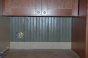 Rick took out the top of the three lower drawers, and used the piece he removed to frame in the opening made above the oven for the microwave. We purchased the cabinet on clearance at the Parr Cabinet Outlet in Hillsboro, OR. Now this whole unit is ready to be installed! |