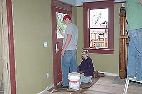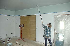Kass putting on the second coat of the Living Room's