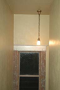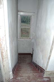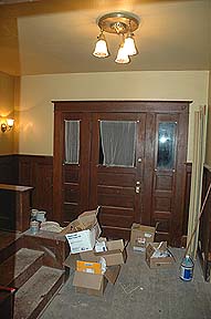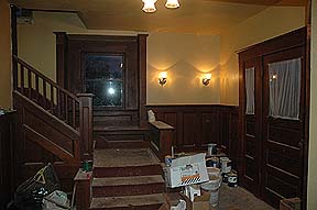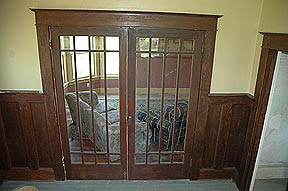 | Excellent condition Entryway doors. Rick's mom told us "If for no other reason, save this door!" | Shot of the stairs & woodwork. This room is in the best condition of the whole house. |