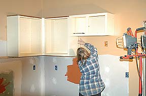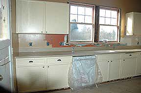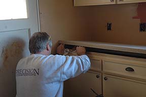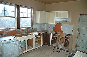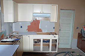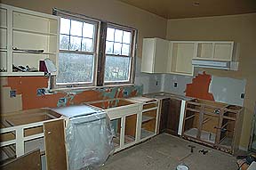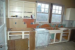 cabinets in the Kitchen. Rick is puting on the doors here. |