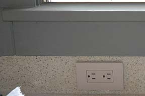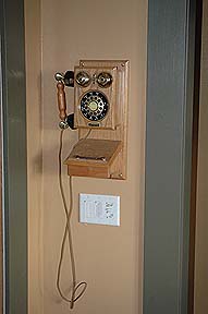 ...................................................... Below an example of the completed floor molding, and right the mounted reproduction wall phone Rick found on Craigslist. |