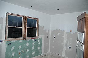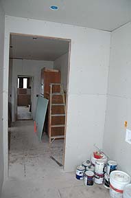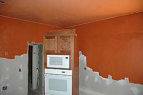 Over the last two weeks the walls have been taped, mudded, textured and now primed as well! Kass found a decorative plate with colors she really likes, so she's going to match paint colors, pick them up later this week and we'll put them up to see how they look! |
