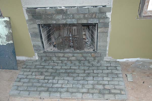 2008, Kass sealed and grouted the fireplace tiles in the