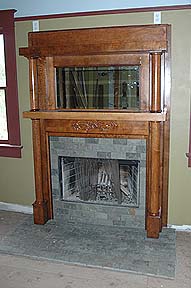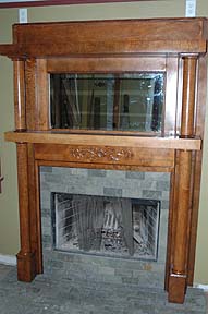 | Kass bought this mantel on E-bay. A little paint stripper, and it is good to go over our prefab fireplace in the living room. |