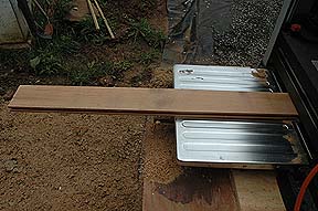 | Rick borrowed a planer from his dad Cliff Young. As you can see it cleaned up the boards with linoleum and glue stuck to them very very well! | |