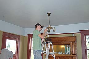 Kass putting on the second coat of the Living Room's