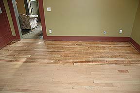 Here you can see the new floor joists going in. We had replaced or sistered in all but two floor joists in the Living Room at this time, and part of the subfloor. |