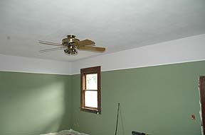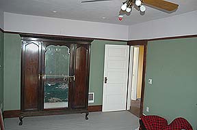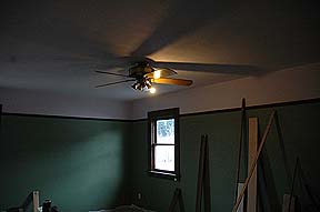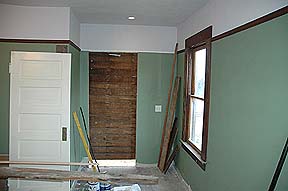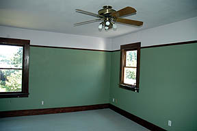 June 15, 2008 Rick and Kass installed the first pieces of base molding in the Master bedroom. We need to get one more long board and the upper molding and this room will be complete. |