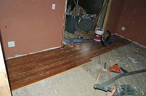 | Here is the all new sub floor for the Parlor. We were able to save some of the sub floor, and the original flooring was salvaged for use in the upstairs bedrooms. It's very nice to be able to walk through here again. :) | Here is