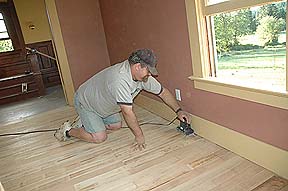 putting flooring into the old house starting with the